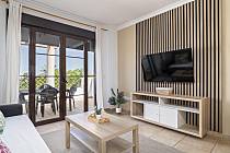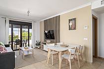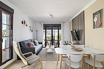 This second-floor apartment is highly exclusive due to its unique layout compared to others and its limited availability, as it is a penthouse with two terraces. One terrace measures 12 m², and the other 25 m², both furnished with garden furniture, a parasol, and sun loungers. It features two bedrooms with fitted wardrobes, a living-dining room with air conditioning, a separate fully-equipped kitchen, including a dishwasher, and a complete bathroom. This magnificent residential complex offers 4 pools (2 for adults and 2 for children), extensive communal garden areas, picnic spots, mini golf, paddle courts, and numbered parking spaces within the residential area.