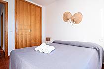 The property features a practical and cozy layout. It consists of two bedrooms—one with a double bed and the other with two single beds—both equipped with wardrobes that provide ample storage space for belongings. The apartment also includes a fully equipped bathroom, an independent kitchen designed for convenient meal preparation, and a spacious living-dining area that connects directly to the terrace.