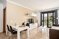 This apartment is ideal for families and offers a wonderful private terrace directly accessible from the living room. Furnished with outdoor furniture, the terrace is perfect for enjoying breakfast, lunch, or dinner outdoors while admiring views of the gardens and pools of the complex. The apartment features two cozy bedrooms, each with built-in wardrobes to keep your belongings organized. The living-dining room, equipped with air conditioning, is ideal for family gatherings or relaxing after a day exploring the area. The independent kitchen is fully equipped, including a dishwasher, to make you feel right at home. The full bathroom is perfect for getting ready after a day at the beach or strolling along the promenade. Additionally, the property offers free high-speed Wi-Fi to keep you connected at all times.