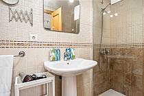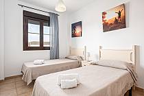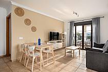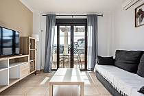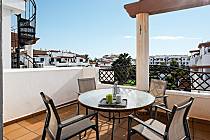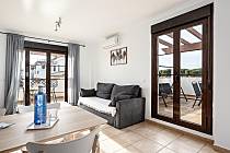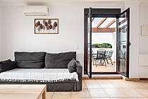 This apartment on the 2nd floor is very exclusive. It features a unique layout compared to others and is available in very limited numbers as it is a penthouse with double terraces. One terrace measures 12 m² and the other 25 m², both equipped with garden furniture, parasol, and sun loungers. It has 2 bedrooms, fitted wardrobes, a living-dining room with air conditioning, a separate kitchen fully equipped, including a dishwasher, and a complete bathroom.