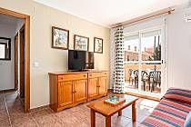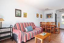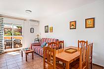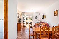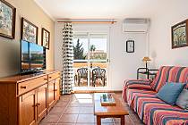 With two carefully designed bedrooms, the master bedroom features a comfortable double bed, a wardrobe, and an exclusive private terrace, perfect for enjoying moments of tranquility. The second bedroom, equally cozy, is equipped with two single beds and a built-in wardrobe, ensuring optimal rest for all guests. The full bathroom with a bathtub and natural ventilation adds an extra touch of comfort, while the spacious air-conditioned living-dining room creates a warm and relaxed atmosphere. From the bright outdoor terrace, you can delight in views of the spectacular gardens and communal pools.
