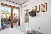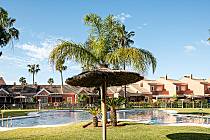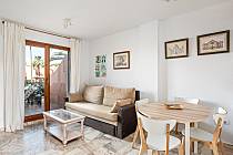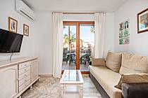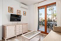 This apartment in Residencial Mariposas is located in the renowned Novo Sancti Petri area, in Chiclana. Available for rent, the apartment features a spacious living-dining room with air conditioning and an American-style kitchen, as well as 2 bedrooms. The main bedroom is very large, offering plenty of space to install a crib if needed, and is also equipped with air conditioning. The secondary bedroom includes 2 single beds and built-in wardrobes. The bathroom has a large shower, and the fully equipped kitchen includes a dishwasher, ensuring you feel at home. The living-dining area opens directly onto a spacious porch with outdoor furniture and a retractable awning, bordered by a hedge for complete privacy, with direct views of the communal pool, which is fenced to prevent access by small children. Each residence has a covered, numbered, and assigned parking space within the complex.