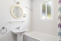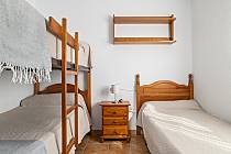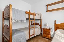 Heading up to the first floor, you’ll discover two cozy bedrooms designed for comfort and relaxation. The master bedroom, with its elegant double bed and garden views, invites you to unwind and disconnect. The second bedroom, perfect for families, is equipped with bunk beds, an additional single bed, and a spacious wardrobe. For added convenience, the main bathroom is also located on this upper floor, equipped with everything you might need.
