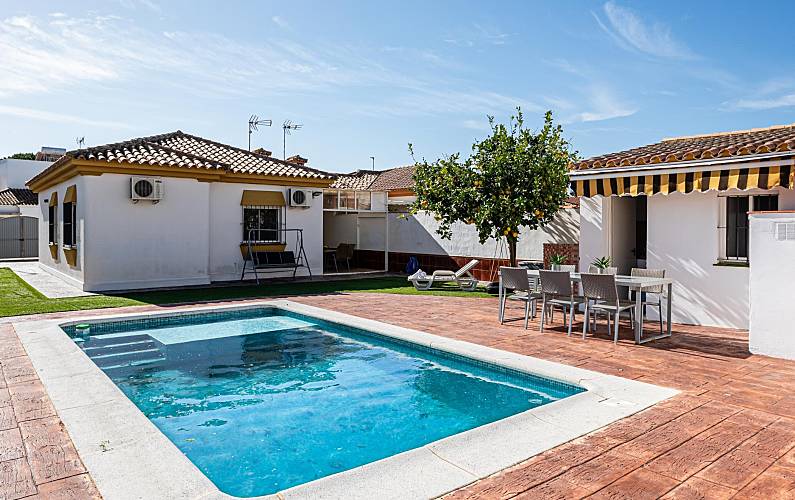 Discover the perfect getaway on the coast of Cádiz! This exquisite independent villa in Chiclana de la Frontera combines luxury, comfort, and an exceptional location to offer you an unforgettable experience with your family or friends.