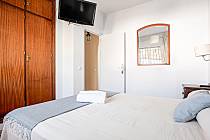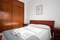 The master bedroom features a king-size bed (180 cm, convertible into two singles), a built-in wardrobe, air conditioning, and a TV.