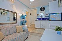 Amenities include: living room, bedroom with two single beds, fold-down bunk for two children, equipped kitchen, bathroom with Japanese toilet, air conditioning, flat-screen TV and free Wi-Fi.