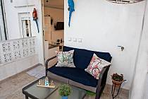 Inside you’ll find a cozy Andalusian-style living room, a private terrace for sunny breakfasts and sunset drinks, a fully equipped kitchen (hob, fridge, microwave, basic cookware) and a modern bathroom with a Japanese toilet. The bedroom has two single beds, plus a fold-down bunk perfect for children. There is air conditioning, a flat-screen TV and free Wi-Fi.